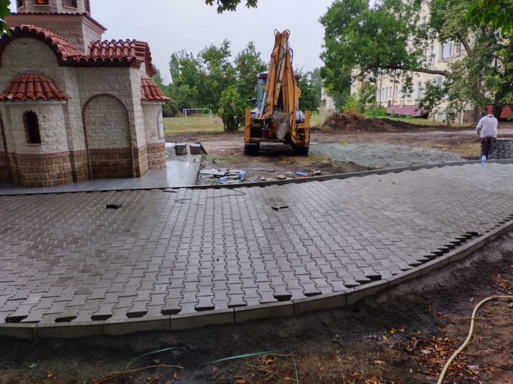 Вертикалната планировка за алеята около храма е дело колеги от строителната катедра и фирма БОШ СТРОЙ ЕООД.