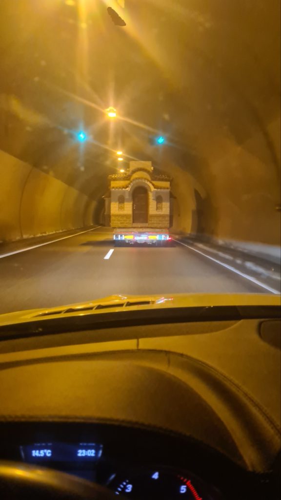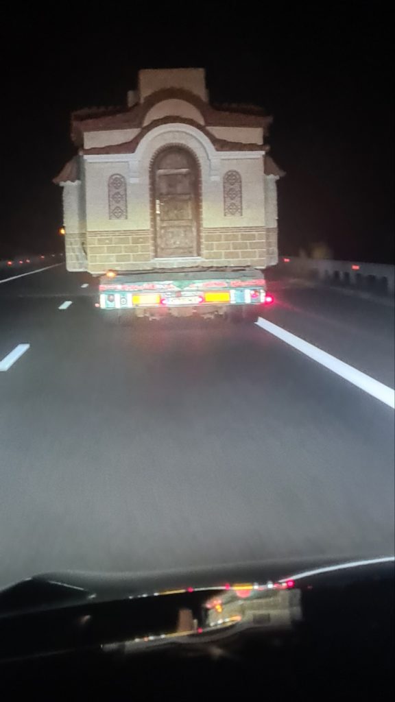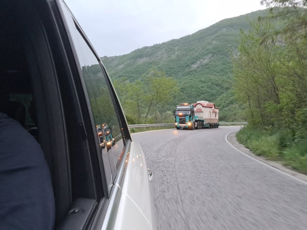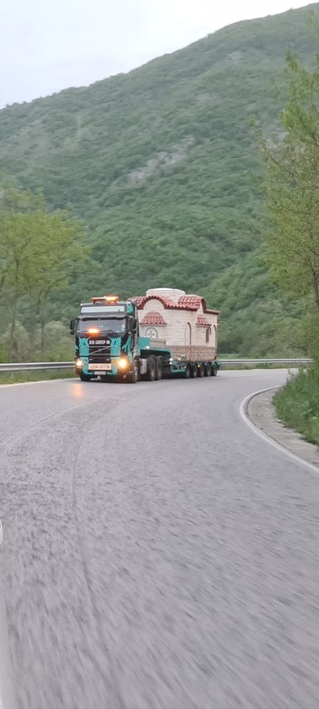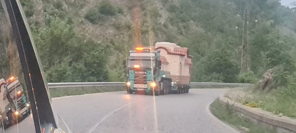 Снимки и кадри от натоварването на храма в Гърция и транспортиране до България.