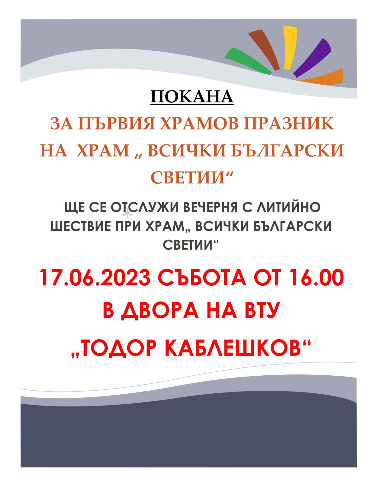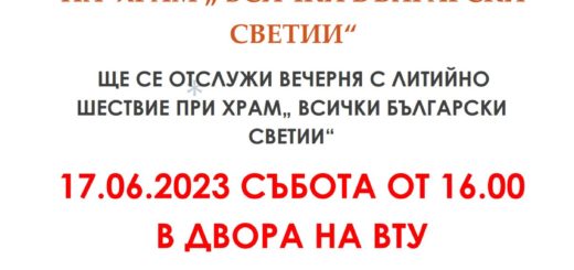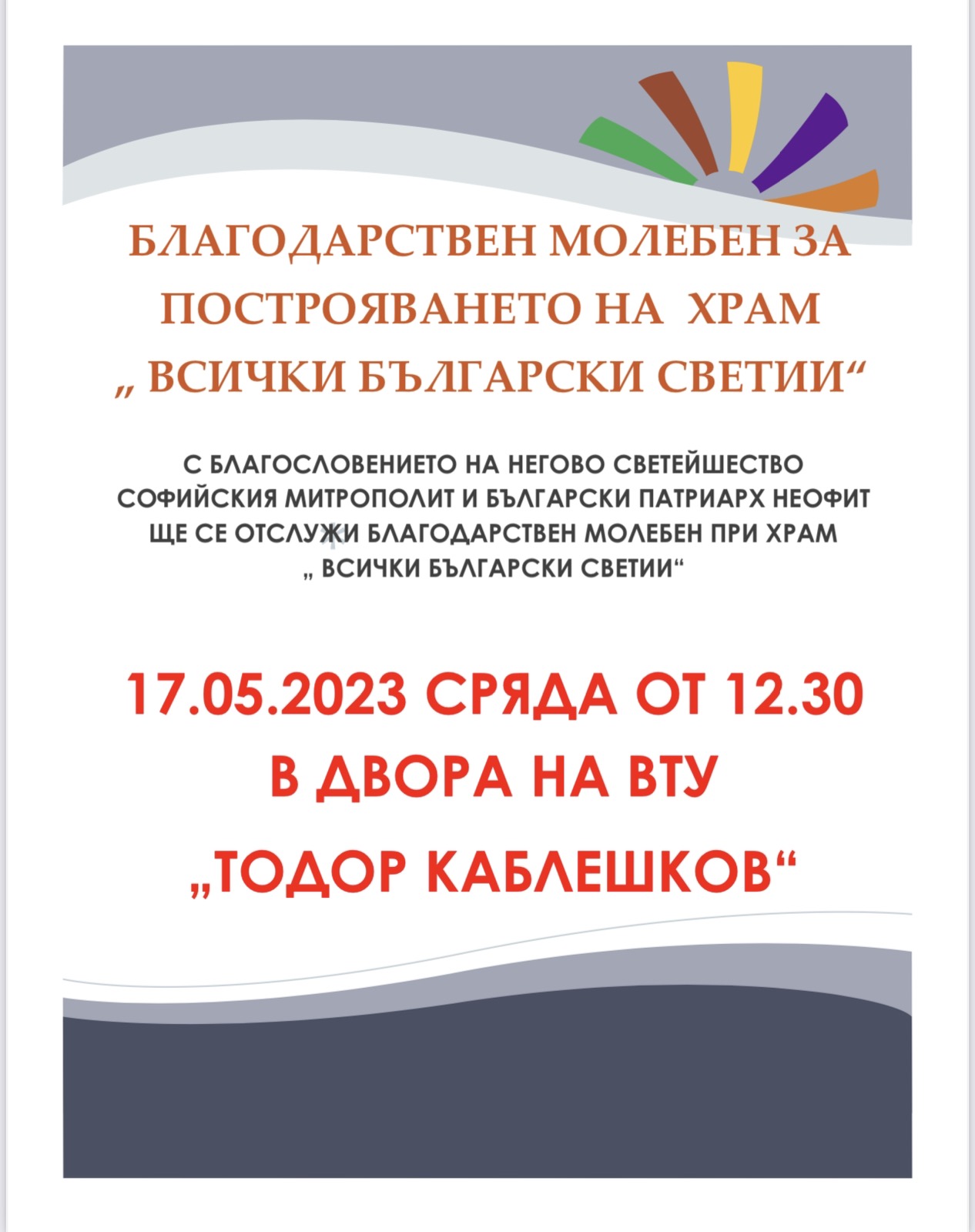 По повод абсолвентското тържество и дипломирането на Випуск`2023 във ВТУ „Т. Каблешков” се проведе паралелна дарителска кампания и се събраха средства за довършването на храма.Благодарим на всички отзовали се!